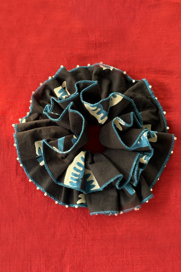 Handcrafted in our studio with love, our layered scrunchie is made in an original Jodi print. It has a comfy stretch to add flair to your hair dos. It has been up-cycled from leftover fabric scraps and trims, making it stylish and eco-friendly too. Embrace the zero-waste trend and enhance your style effortlessly.