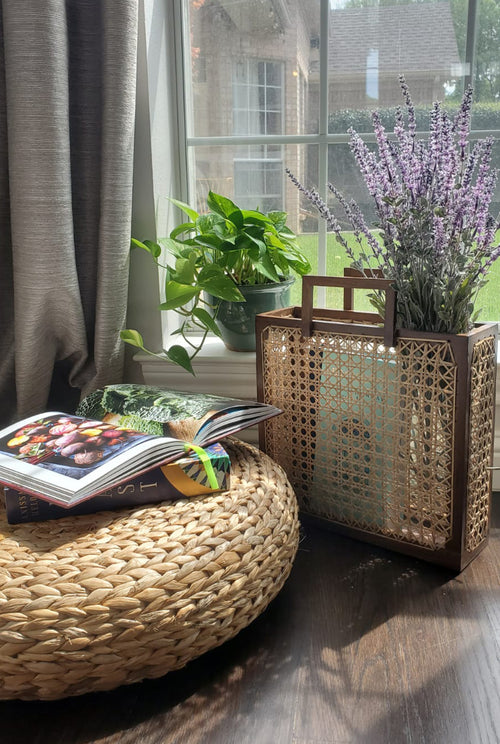 Simple and chic, made from wood and embedded cane rattan work.