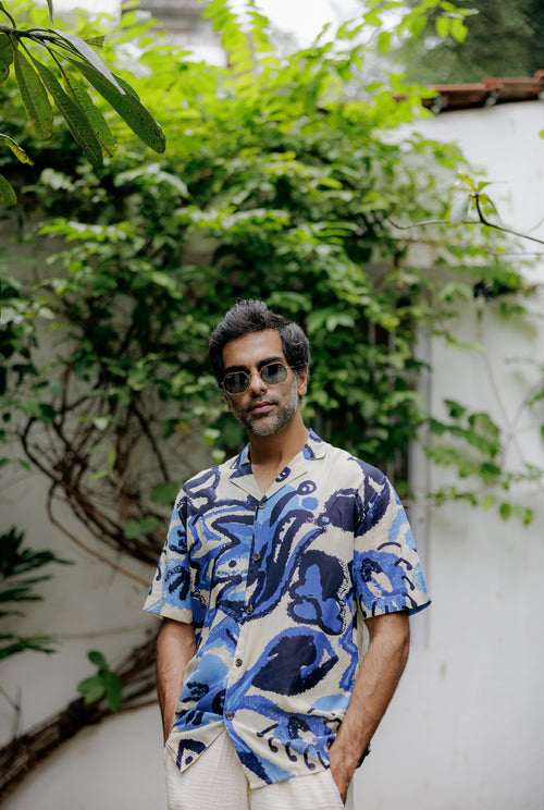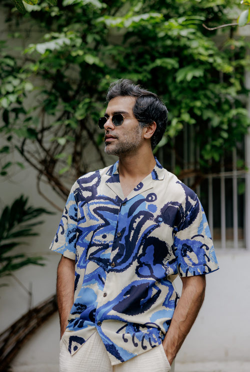Inspired by the fluidity of hand-painted strokes, our Irul shirt is crafted from lightweight cotton fabric, which offers a loose, relaxed fit for all-day comfort.