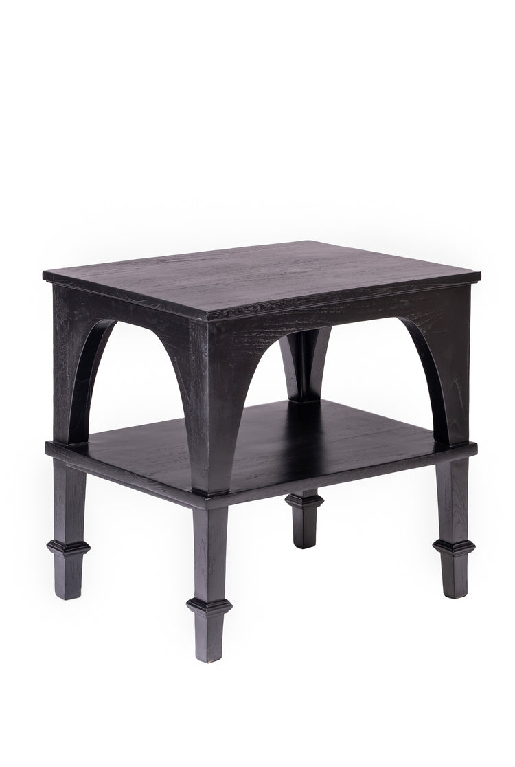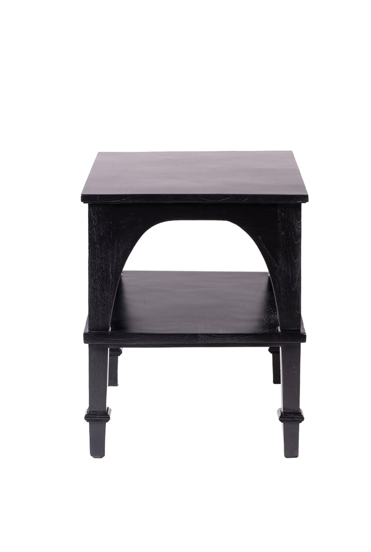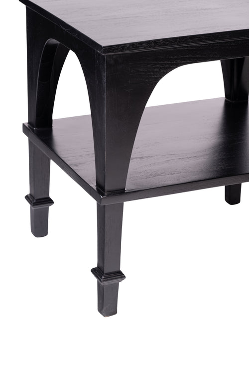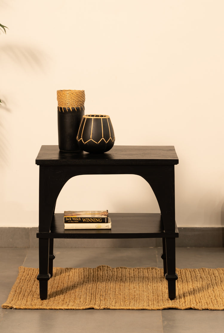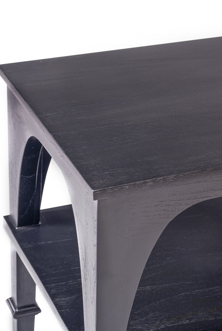 NOCTEN is a refined side table carved from solid teak wood and finished in a deep, elegant black, exuding quiet sophistication. Its details and vintage-inspired silhouette lend a sense of timeless depth, while the bold finish gives it a contemporary edge — making NOCTEN a perfect accent for modern, moody interiors.