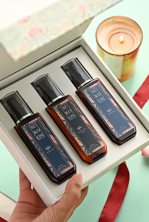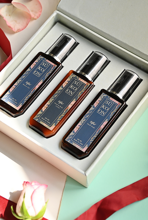 Escape into Ulfat’s magical rose world and delight your senses. Set of three Bukhoor & Rose fragranced products – Shower Gel, Lotion and Hand Wash.