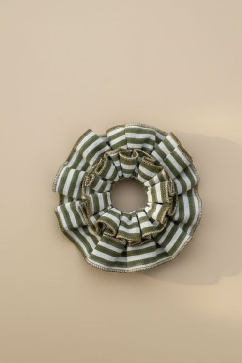 Handcrafted in our studio with love, our layered scrunchie is made in an original Jodi print. It has a comfy stretch to add flair to your hair dos. It has been up-cycled from leftover fabric scraps and trims, making it stylish and eco-friendly too. Embrace the zero-waste trend and enhance your style effortlessly.