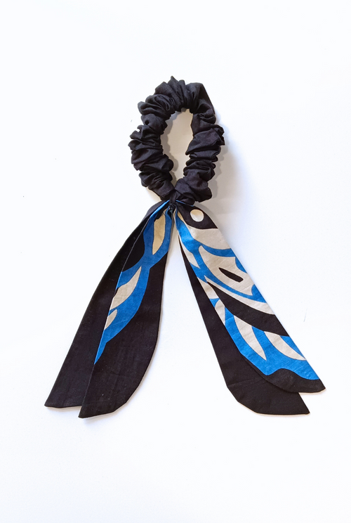 Our Orca tie-up scrunchie is made out of love with a comfy stretch that is soft on your hair. Pull your hair up into a ponytail, then wrap your scrunchie around it, twice. It features an original Jodi print and is made out of post production waste. Get our upcycled scrunchies and embrace your hair with utmost ease.