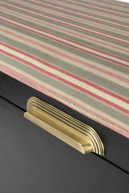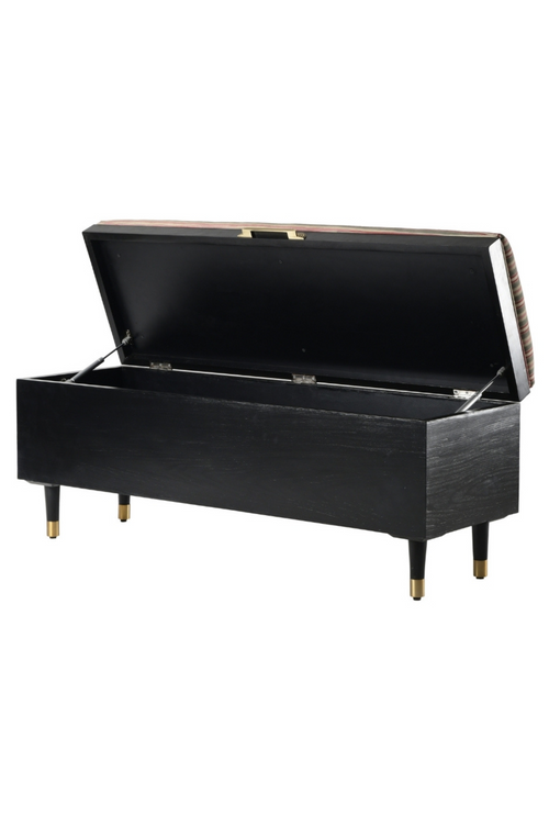 Aura Storage bench features a classic design with eye-catching details like the piping on the edges and brass handle. Along with offering extra seating, it also provides valuable storage space. The safety hinge design ensures easy and safe usage. It's a perfect addition to create a functional room and enjoy quality time with your family.