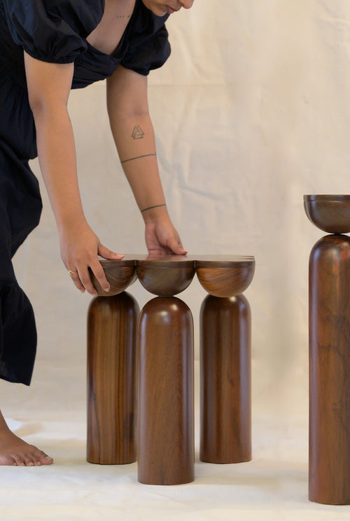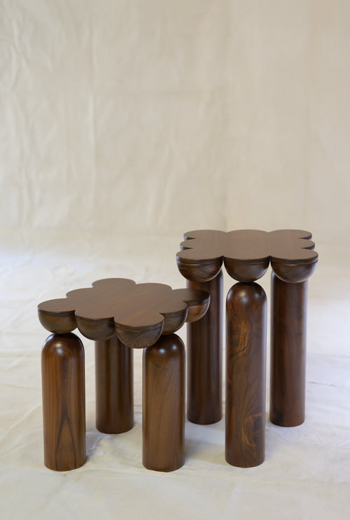 The Scallop side tables stand in their eccentric and bold form, handcrafted from reclaimed teak wood. As a set, these become the perfect nested tables that will definitely get a