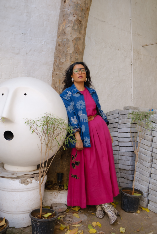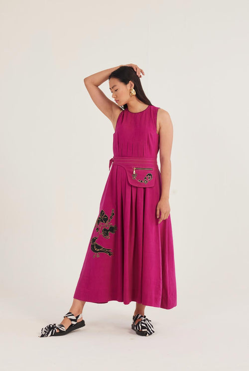 A burst of colour, just in time for spring! This fit-and-flare dress is crafted from hand-dyed Kala cotton, featuring delicate appliqué on the front and hand embroidery along the neck and armholes. Easy, breezy, and full of charm. You can complete the look with our Tai handloom fanny pack.