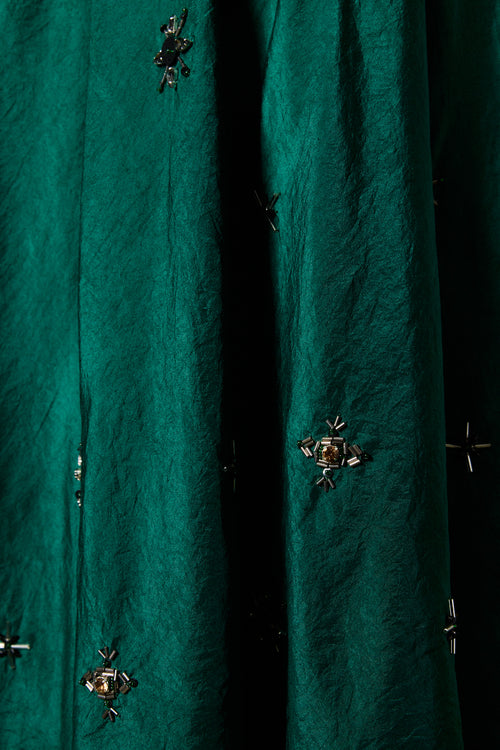 We believe customers have a right to know how their product was made. 3.5 metres of 100% Taffeta silk fabric sourced from Jaipur has been used for this piece. Hand embroidered by our artisans and manufactured in our workshop at Pune India.