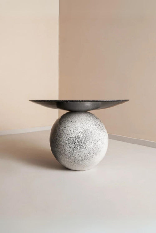 Thoughtful minimalism comes alive in the Ball Coffee Table, to create a basic shape with a strong visual identity. Made, sanded and waxed by hand, the speckled finish takes shape as a stunning anchor to the living room.
