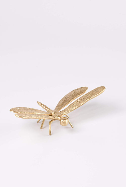 Crafted from brass with a gentle matte finish, our charming dragonfly adds a touch of elegance to any space. Whether adorning your shelves or holding down papers and tissues, this versatile piece brings both beauty and functionality to your home. Handmade in India.