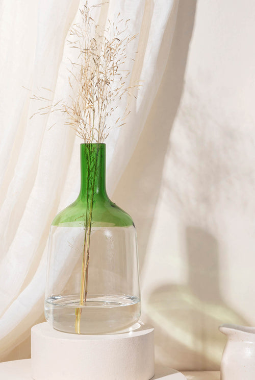 With its unique two colours, this statement glass vase adds a gleaming layer of dimension placed in a living room corner or next to a side table. Add fresh flowers to the vase and chic-up your tabletop in an instant.