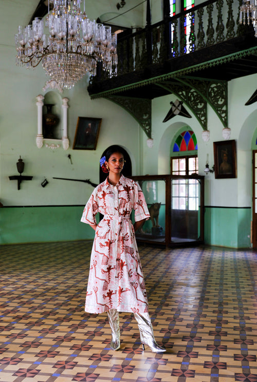 We believe customers have a right to know how their product was made. 3.5 metres of handloom fabric sourced from West Bengal has been used for this piece. Hand printed by our artisans in Jaipur, manufactured in our workshop at Pune India.